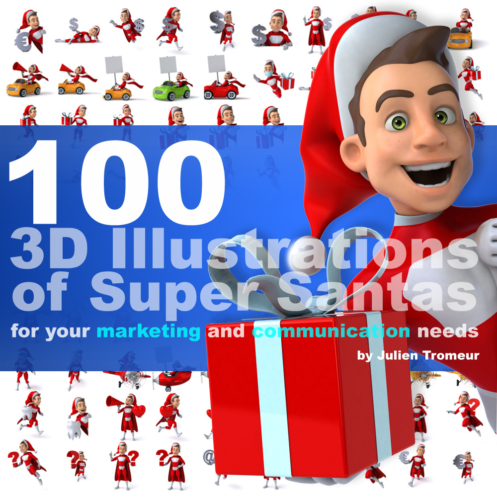 100 Illustrations of 3D Super Santas !