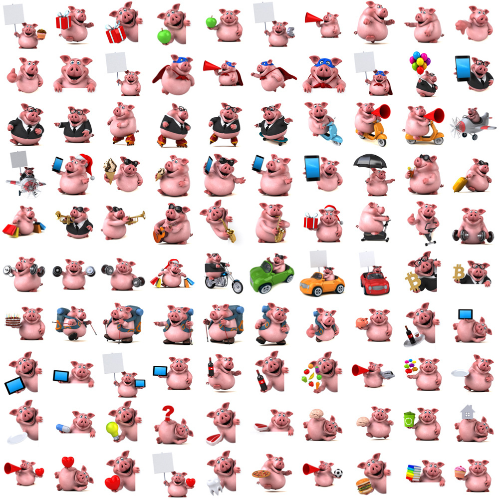 100 Illustrations of cartoon pigs